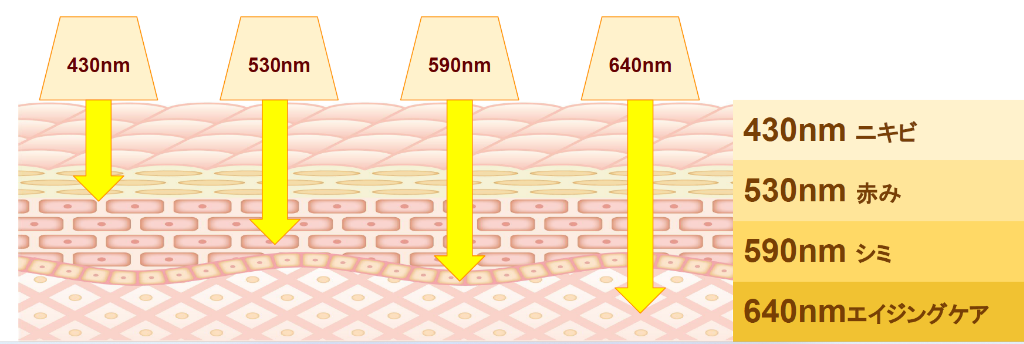 光の届く深さに合わせたカートリッジを使用するため、お悩みやお肌の状態に合わせた使い分けができます。